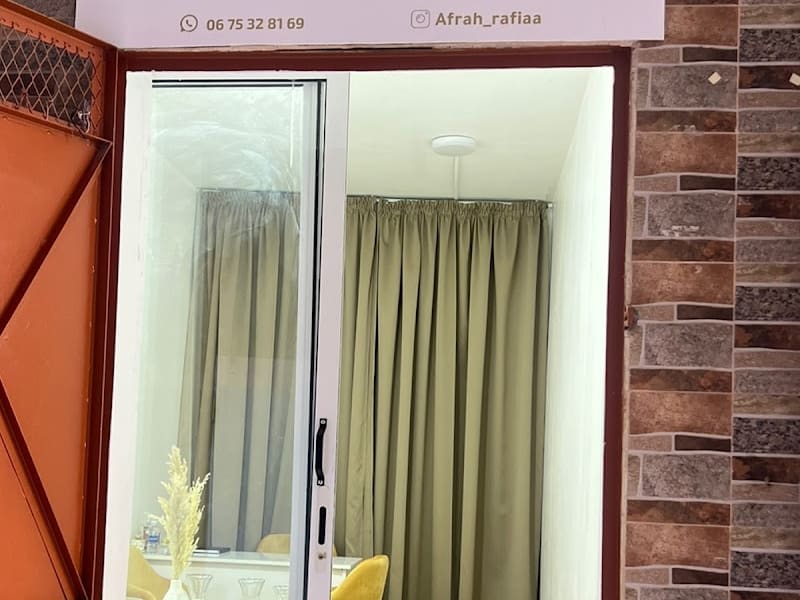 Afrah Rafiaa est Décoration à Tanger avec une note de 5.0/5 basée sur 4 avis Google. Contactez directement via WhatsApp pour plus d'informations sur les prestations et tarifs.