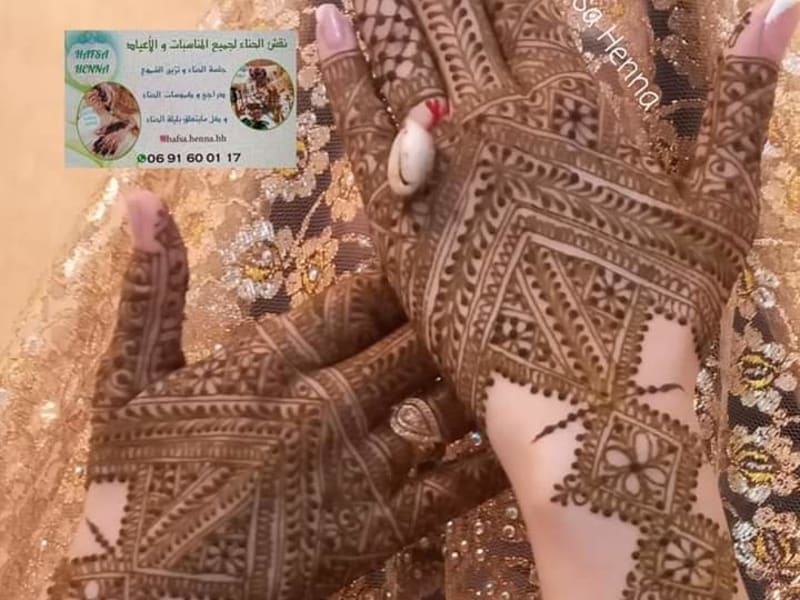 Hafsa henna est Henna à Tanger avec une note de 5.0/5 basée sur 4 avis Google. Contactez directement via WhatsApp pour plus d'informations sur les prestations et tarifs.